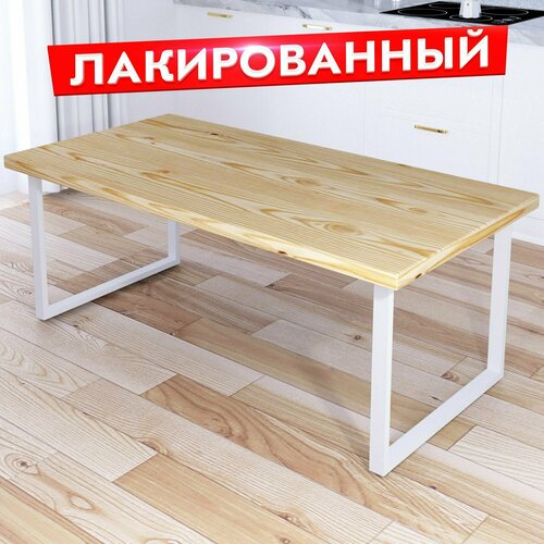 Стол журнальный Loft с лакированной столешницей из массива сосны 40 мм и белыми металлическими ножками, 140х70х50 см