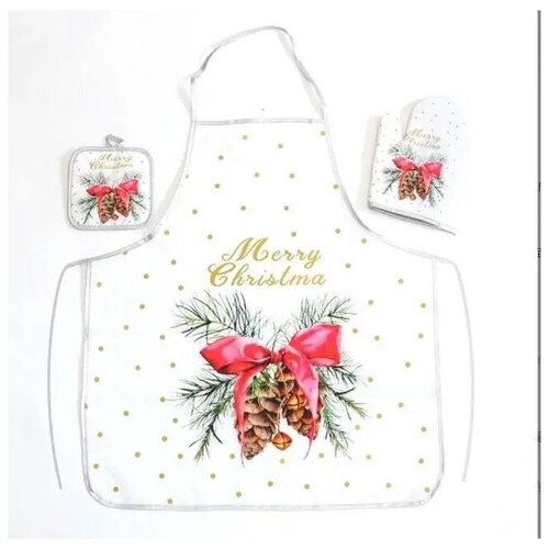 Набор аксессуаров для кухни Homium Merry Christmas, 3 предмета (фартук, варежка и прихватка)