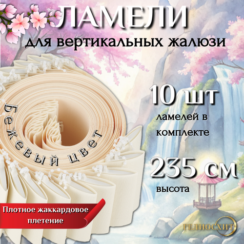 Ламели для вертикальных жалюзи тканевые Плейн 15 шт высота 235 см, цвет слоновая кость - карниз приобретается отдельно
