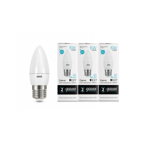 Упаковка светодиодных ламп 3 шт Gauss Elementary Свеча 6W 450lm 4100K Е27 LED 33226