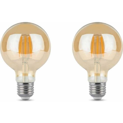 Светодиодная лампа Gauss Black 6W эквивалент 60W 2400K 550Лм E27 ретро лофт золотистая сфера (комплект из 2 шт)
