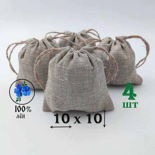 Льняной мешочек с джутовыми завязками 10 на 10 см./ 4 шт./ упаковка для подарков и хранения