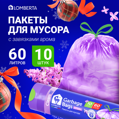 Мешки для мусора Lomberta 60л, ароматизированные с завязками, 10 шт