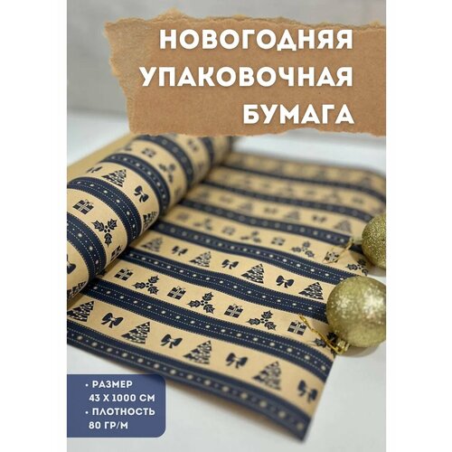 Новогодняя упаковочная крафт-бумага, 10 метров