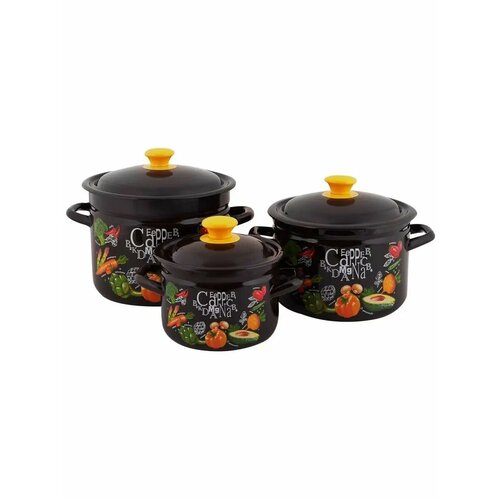 Набор эмалированной посуды Болоньезе-1-Экстра, черный; сферическая форма 2 л, 3 л, 4 л / набор кастрюль / набор кастрюль эмалированных