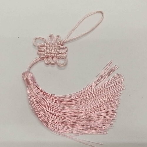 Подвеска Узел счастья с кисточкой из нитей розовая 25 см