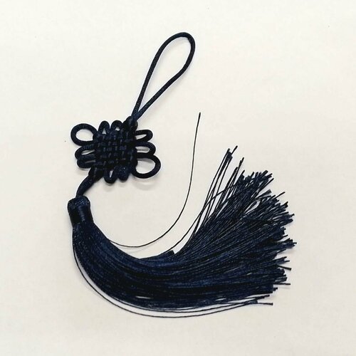 Подвеска Узел счастья с кисточкой из нитей темно-синяя 25 см