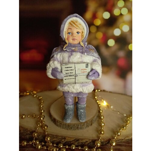 Ватная игрушка на елку "Девочка с посылкой". Высота 12,5 см. Ручная работа