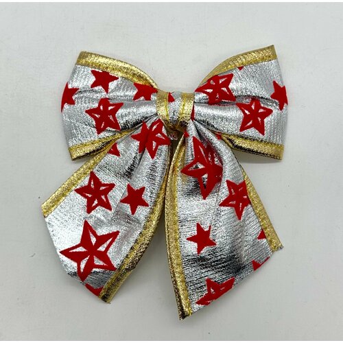 Комплект новогодних бантов со звездочками 3 шт серебристые