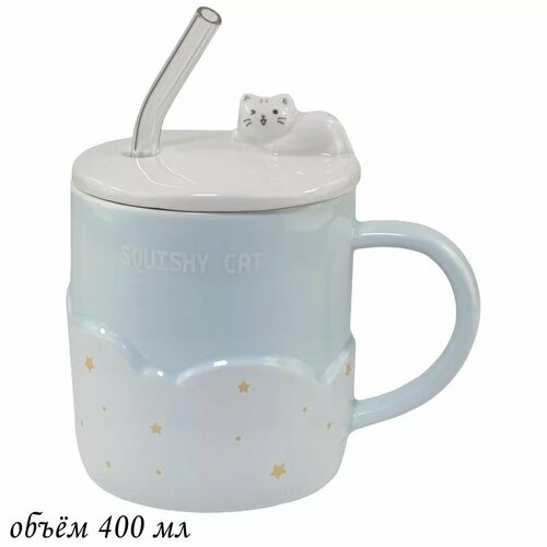 Кружка с крышкой и трубочкой 400мл в подарочной упаковке Голубой 106-130 118-106-130