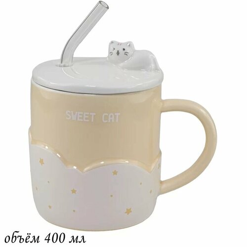 Кружка с крышкой и трубочкой 400мл в подарочной упаковке Желтый 106-131 118-106-131