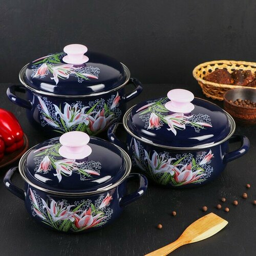 Набор кастрюль Керченская эмаль "Версаль", 3 кастрюли: 1,5 л, 2 л, 3 л