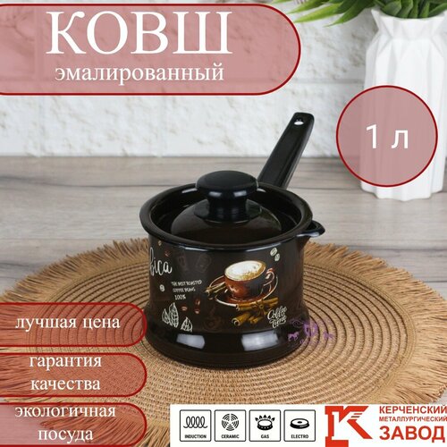 Ковш эмалированный с крышкой 1 л "Арабика" Керченская эмаль