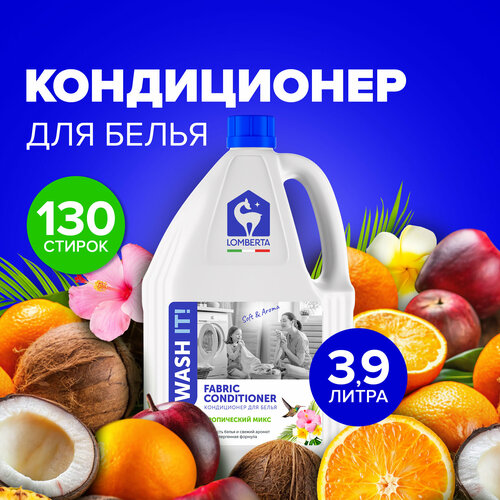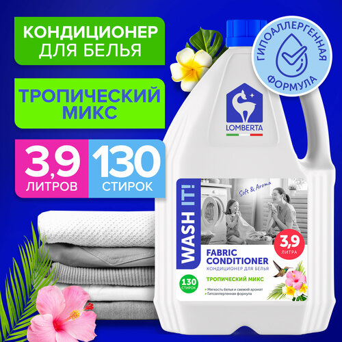 Кондиционер для белья Lomberta ополаскиватель концентрат 3.9 л для ручной стирки и стиральной машины, "Тропический микс", гипоаллергенный, антистатик