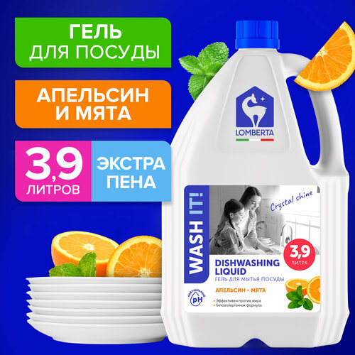 Моющее средство для посуды Lomberta, 3.9 литров / концентрированный гель с ароматом "Апельсин и мята"