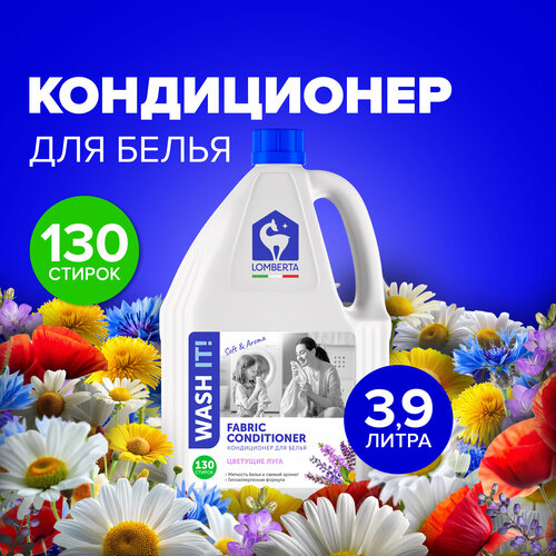 Кондиционер для белья Lomberta, ополаскиватель концентрат 3.9 л для ручной стирки и стиральной машины, Цветущие луга, гипоаллергенный, антистатик