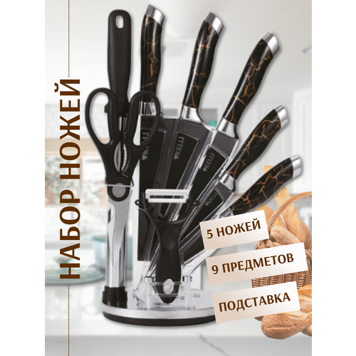 Набор кухонных ножей на подставке Kelli 9 предметов