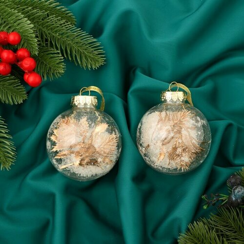 Набор шаров пластик d-8 см, 2 шт "Фиеста" снежок листочки, золото 9510237