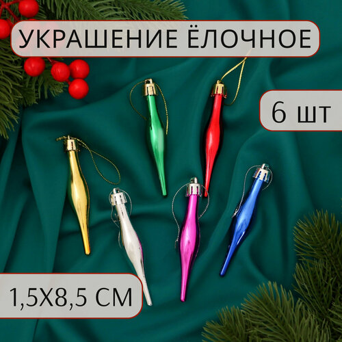 Украшение ёлочное "Сосулька мелодия" (набор 6 шт) 1,5х8,5 см, микс 9510752