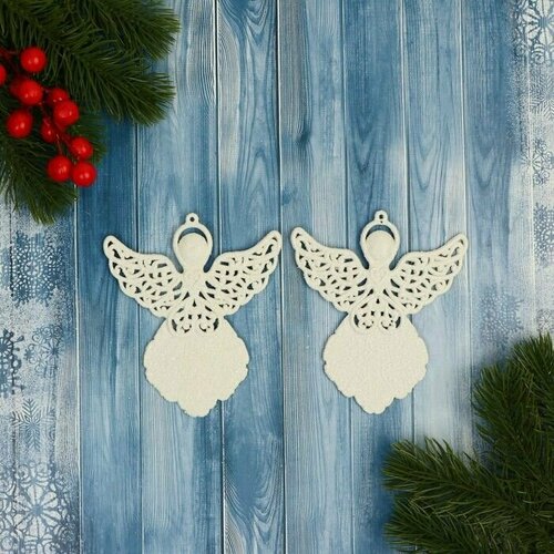 Украшение ёлочное "Ангелочек люкс" (набор 2 шт) 9х11 см, белый
