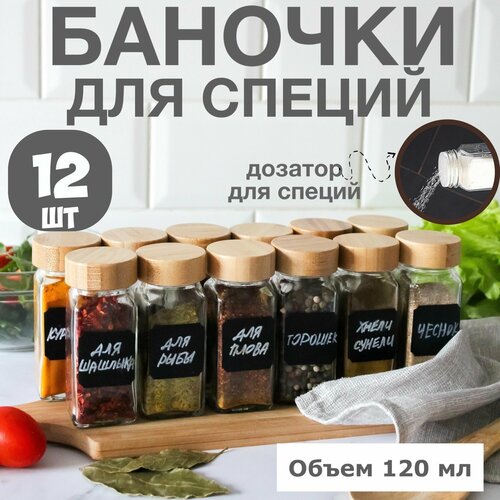 Баночки для специй с дозатором и наклейками,12 штук, объем 120 мл