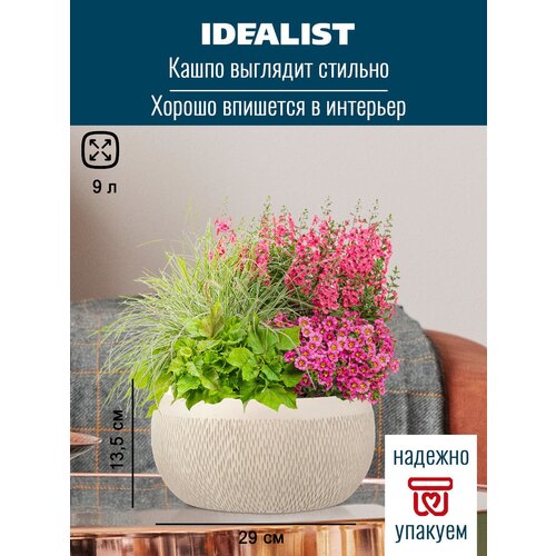 Настольное кашпо для цветов IDEALIST Lite Лотус Чаша, слоновая кость, D29 H13.5 см, 9 л.