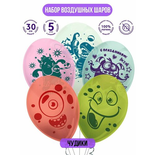 Воздушные шарики для праздника ND Play. Чудики 30 см, 5 шт, 307092