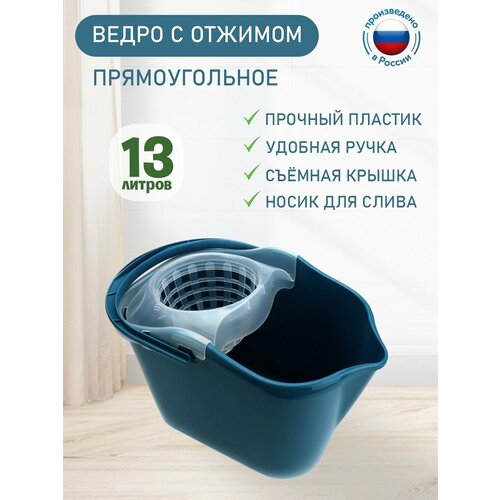 Ведро прямоугольное 13л с Vanda отжимом МОП (темно-синий), ND Play