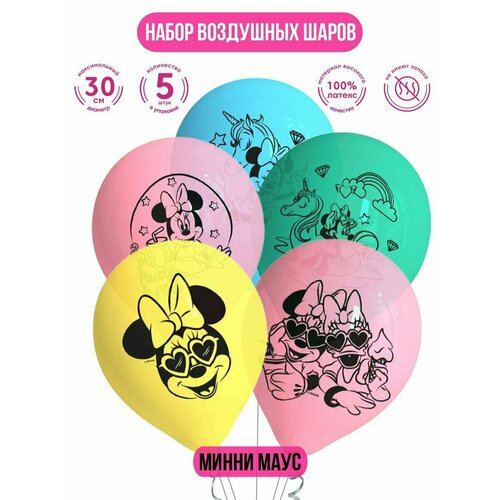 Воздушные шарики для праздника ND Play. Минни Маус 30 см, 5 шт, 295897