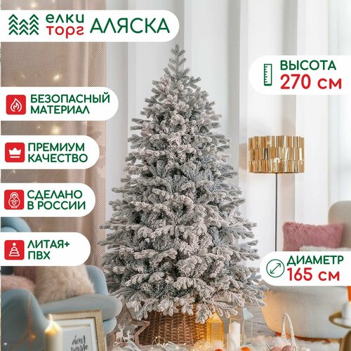 Новогодняя искусственная елка Аляска заснеженная 270 см, литая хвоя+пвх, ЕлкиТорг (146270)