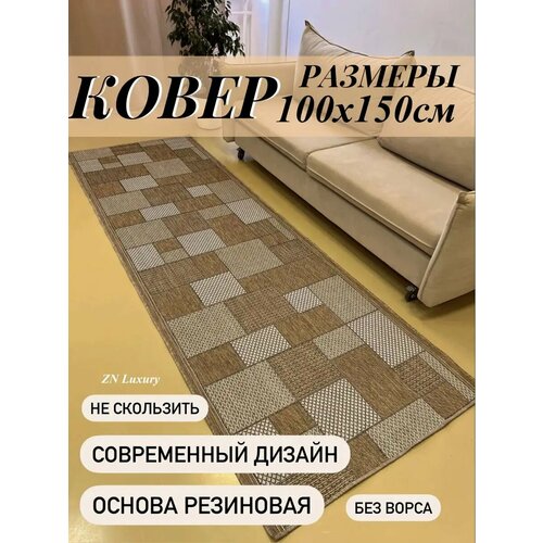 Ковер безворсовый 100х150 на пол антискользящий для кухни