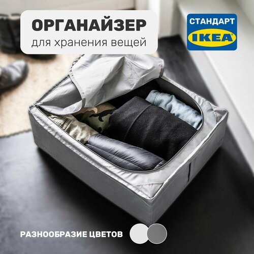 Органайзер/коробка/кофр для хранения вещей, одежды, белья, тканевый, складной, 44х55х19 см, темно-серый