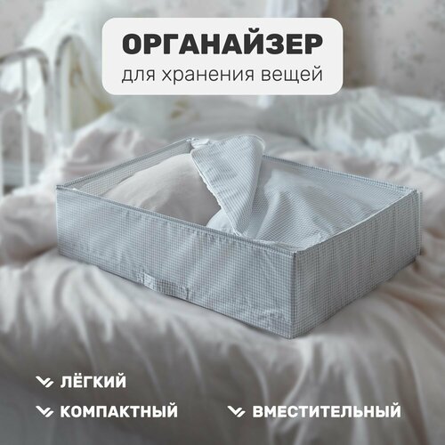 Органайзер/коробка/кофр для хранения вещей, одежды, белья, тканевый, складной, 71х51х18 см, белый/серый