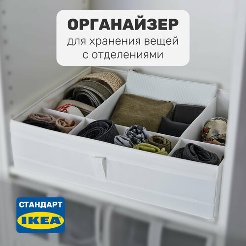 полипропилен, полиэстерОрганайзер BAXNA предлагает элегантное и практичное решение для хранения мелочей, которые необходимо держать в порядке и под рукой. Размеры каждого элемента органайзера — 17 см в ширину, 20 см в глубину и 6 см в высоту, что делает его удобным для размещения в ящиках, на полках и в шкафах. Преимущества: · Универсальность: оптимальный размер для хранения аксессуаров, косметики, канцелярских товаров или небольших вещей гардероба. · Прочность: комбинация полиэстера и полипропиленовых вставок обеспечивает долговечность и сохранность формы органайзера. · Структурированное хранение: помогает поддерживать порядок и легкий доступ к вещам, минимизируя беспорядок в шкафах и ящиках. · Стильный дизайн: актуальный серо-белый цвет легко сочетается с любым интерьером, добавляя изысканности в оформление пространства. · Экономия пространства: можно использовать в комодах, шкафах или на открытых полках, оптимизируя каждый сантиметр пространства. · Легкость в уходе: полиэстеровая ткань легко чистится, что облегчает поддержание ч