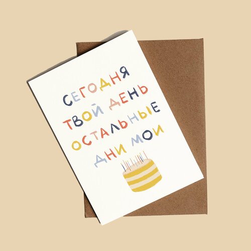 Открытка с днём рождения "Сегодня твой день, остальные дни мои" с конвертом. Формат А6 10,5*14,8 см.