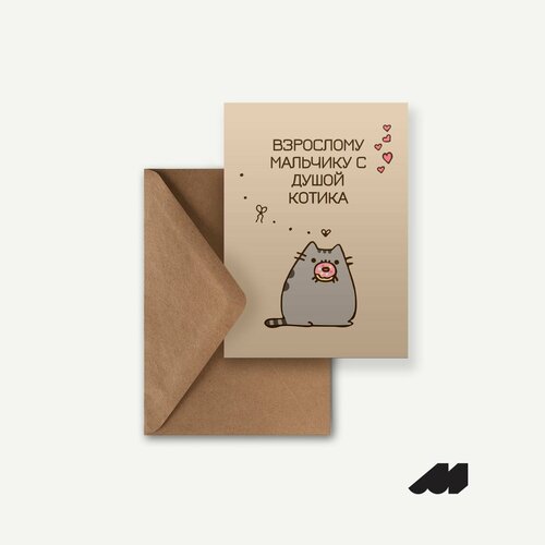 Дизайнерская открытка Meswero / Взрослому мальчику с душой котика / с подарочным конвертом / 10х15