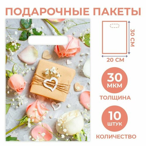 Пакет "Подарочек", полиэтиленовый с вырубной ручкой, 20х30 см, 30 мкм, набор 10 шт