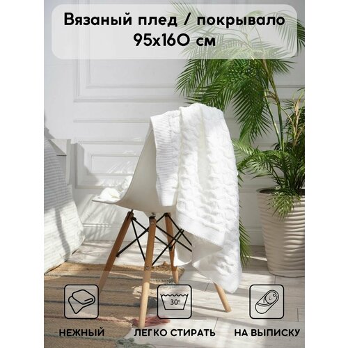 Детский плед связанный , покрывало на односпальную кровать Wave 160х95 см