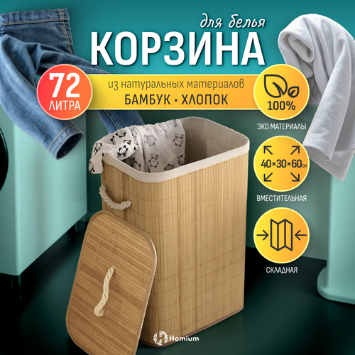 Корзина для белья из бамбука с крышкой для хранения вещей и грязного белья Homium for Home, Eco, размер 40*30*60см
