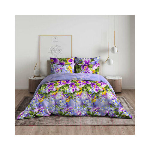 Постельное белье Василиса из бязи, 100% хлопок, 2 спальное. наволочки 70х70 см, Фиалки