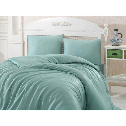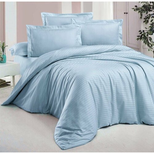 Постельное бельё Maktex из страйп-сатина 2 спальное с Евро простыней Аквамарин 1х1