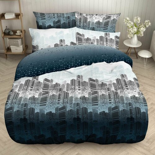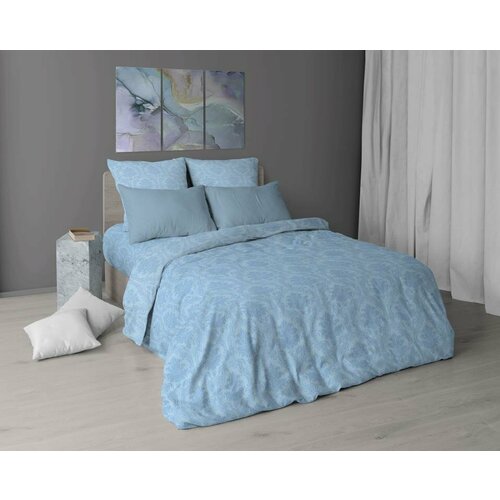 Постельное белье 1.5 спальное "Лидер Дом", поплин, 70х70, хлопок 100%, синее