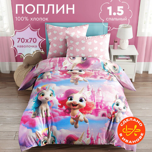 Постельное белье для детей Василек 1,5-спальное, Поплин, наволочка 70х70, Мир единорожек