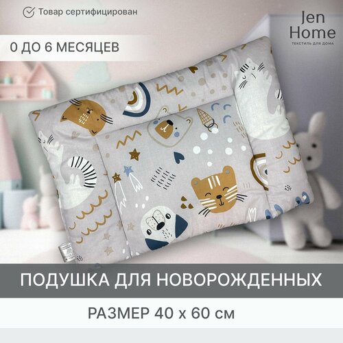 Подушка для малышей, гипоаллергенная 40х60 "Звери на сером" плоская 0+