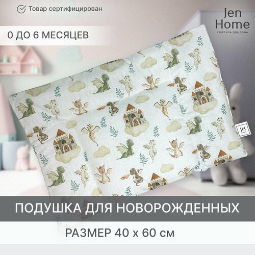 Подушка для малышей, гипоаллергенная 40х60 "Дракошка" плоская 0+