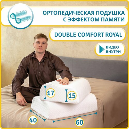 Подушка ортопедическая ORTOONE Double Comfort Royal для взрослых 40х60, высота валиков 15 и 17 см. с эффектом памяти большая, высокая ортопедическая подушка для сна для взрослых