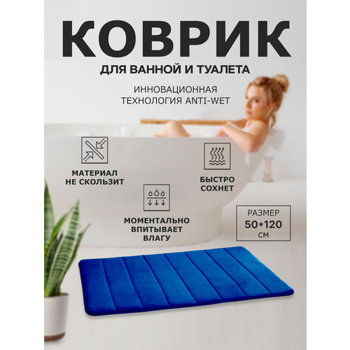 Большой синий противоскользящий коврик для ванной и туалета с эффектом памяти