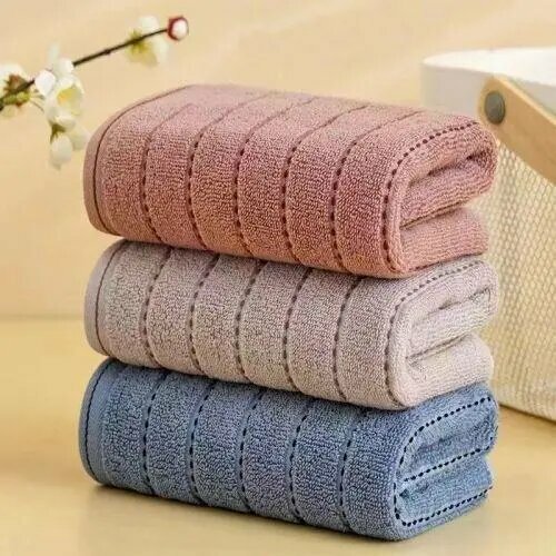 Набор махровых полотенец Для дома и семьи, Махровая ткань, 30x70 см, бежевый, розовый, голубой 3 шт.