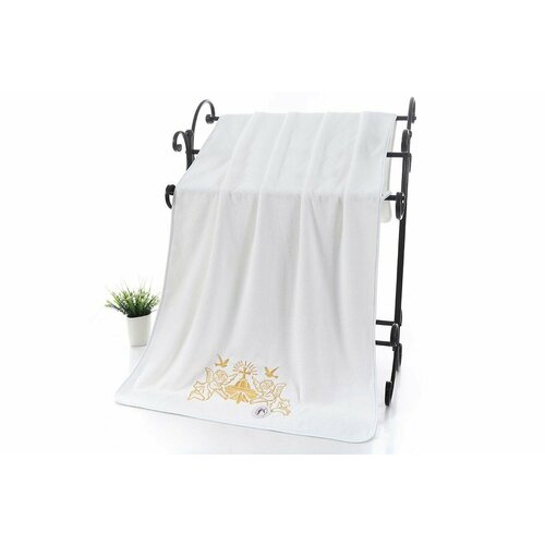 Полотенце крестильное для малышей махровое мягкое 70*140 см белое с золотой вышивкой