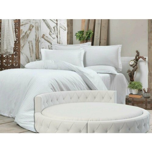 Простыня круглая из страйп сатина на резинке 240 x 240 х 20 - М - 140 - Белый Люкс 3х3